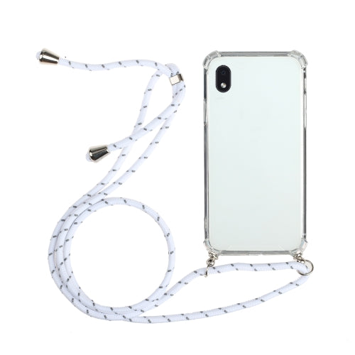 For Samsung Galaxy A01 Core Four-Corner Anti-Fall Transparent TPU Protective Case with Lanyard(White)