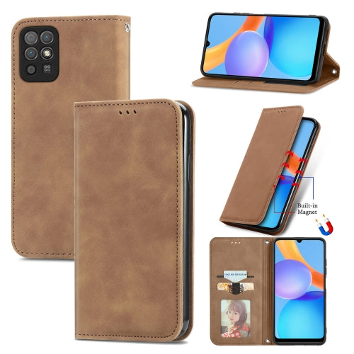 For Honor Play 5T Retro Skin Feel Business Magnetic Horizontal Flip Leather Case with Holder & Card Slots & Wallet & Photo Frame(Brwon)