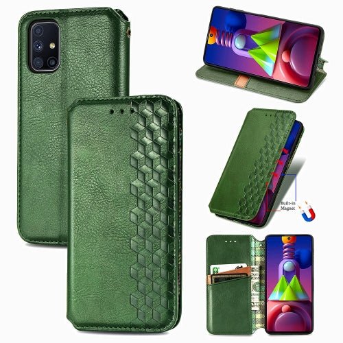 For Samsung Galaxy M51 Cubic Grid Pressed Horizontal Flip Magnetic PU Leather Case with Holder & Card Slots & Wallet(Green)