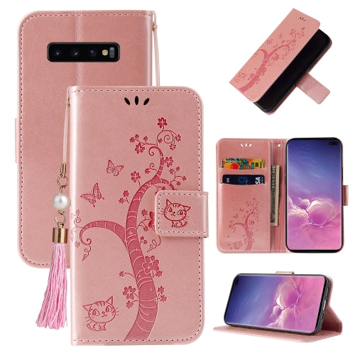For Samsung Galaxy S10+ Embossed Lucky Tree Horizontal Flip Leather Case with Holder & Card Slot & Wallet & Lanyard(Rose Gold)