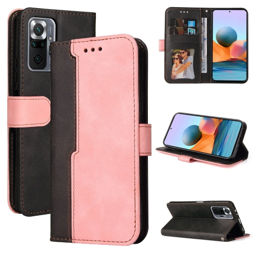 For Xiaomi Redmi Note 10 Pro / Note 10 Pro Max Business Stitching-Color Horizontal Flip PU Leather Case with Holder & Card Slots & Photo Frame(Pink)
