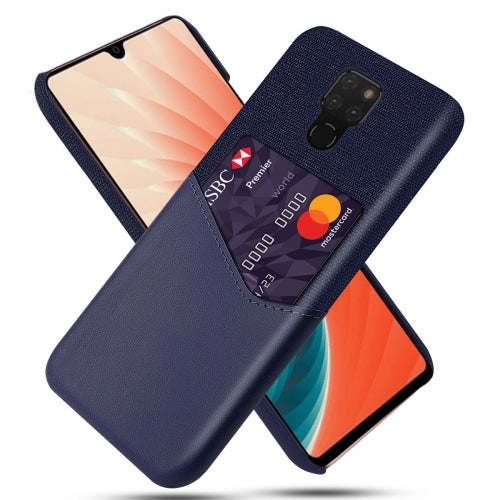 For Huawei Mate 20 Cloth Texture PC + PU Leather Back Cover Shockproof Case with Card Slot(Blue)