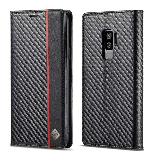 LC.IMEEKE Carbon Fiber PU + TPU Horizontal Flip Leather Case with Holder & Card Slot & Wallet For Samsung Galaxy S9+(Vertical Black)