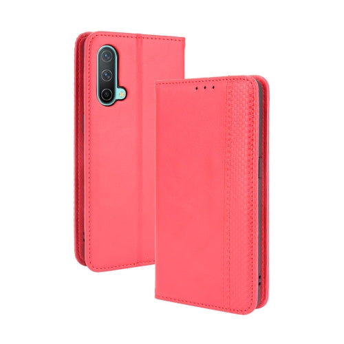 For OnePlus Nord CE 5G Magnetic Buckle Retro Crazy Horse Texture Horizontal Flip Leather Case with Holder & Card Slots & Photo Frame(Red)
