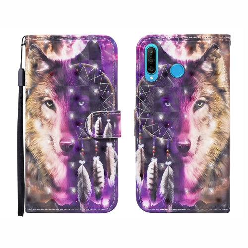 For Huawei P30 lite 3D Painted Pattern Horizontal Flip Leather Case with Holder & Wallet & Card slot & Lanyard(Wind Chime Wolf)