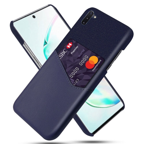 For Samsung Galaxy Note10 Cloth Texture PC + PU Leather Back Cover Shockproof Case with Card Slot(Blue)
