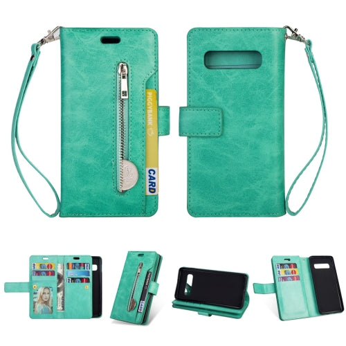 Samsung Galaxy S10+ Multifunctional Zipper Horizontal Flip Leather Case with Holder & Wallet & 9 Card Slots & Lanyard(Mint Green)