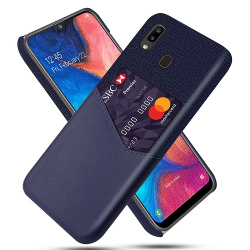 For Samsung Galaxy A20 Cloth Texture PC + PU Leather Back Cover Shockproof Case with Card Slot(Blue)