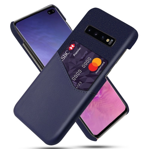 For Samsung Galaxy S10+ Cloth Texture PC + PU Leather Back Cover Shockproof Case with Card Slot(Blue)