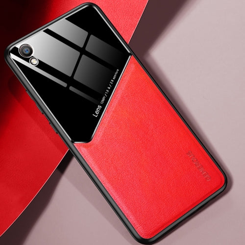 For OPPO R9 Plus All-inclusive Leather + Organic Glass Protective Case with Metal Iron Sheet(Red)