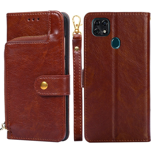 For ZTE Blade 20 Zipper Bag PU + TPU Horizontal Flip Leather Case with Holder & Card Slot & Wallet & Lanyard(Brown)