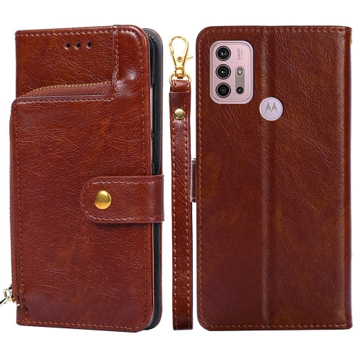 For Motorola Moto G30 Zipper Bag PU + TPU Horizontal Flip Leather Case with Holder & Card Slot & Wallet & Lanyard(Brown)