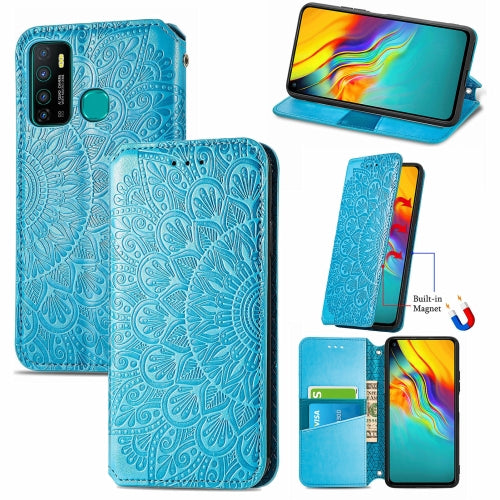 For Infinix Hot 9 Blooming Mandala Embossed Pattern Magnetic Horizontal Flip Leather Case with Holder & Card Slots & Wallet(Blue)
