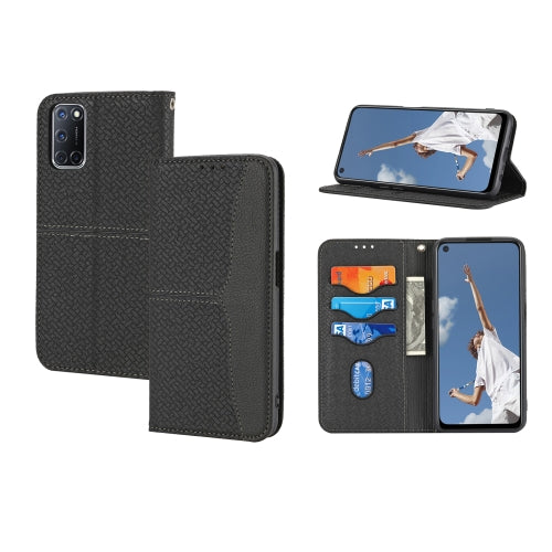 For OPPO A54 Woven Texture Stitching Magnetic Horizontal Flip PU Leather Case with Holder & Card Slots & Wallet & Lanyard(Black)