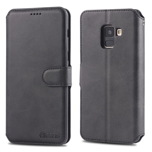 For Galaxy A8 2018 AZNS Calf Texture Magnetic Horizontal Flip PU Leather Case with Holder & Card Slots & Photo Frame(Black)