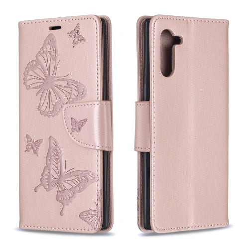 Two Butterflies Embossing Pattern Horizontal Flip Leather Case with Holder & Card Slot & Wallet & Lanyard for Galaxy Note10(Rose Gold)