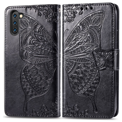 Butterfly Love Flowers Embossing Horizontal Flip Leather Case For Galaxy Note 10 with Holder & Card Slots & Wallet & Lanyard(Black)