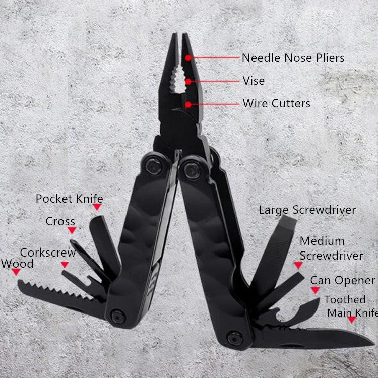15 in 1 Outdoor Camping Survival Tool Foldable Multifunctional Pocket Plier(Black)