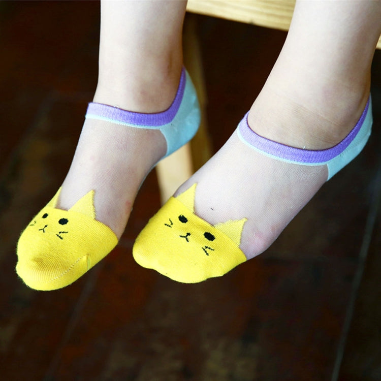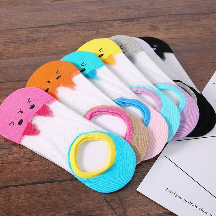 5 Pairs Fashion Female Socks Cute Cat Stitching Transparent Silk Invisible Cotton Sailboat Socks, Size:One Size(Gray)