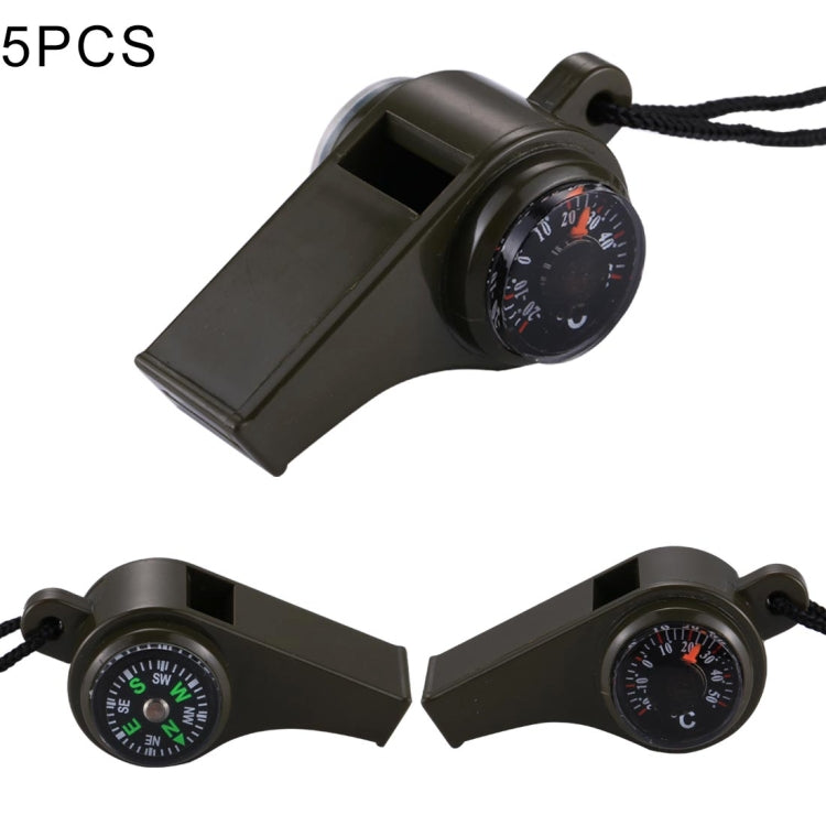 5 PCS 3 in 1 Outdoor Mini Multi-function Portable Handheld Lifesaving Whistle Compass Thermometer