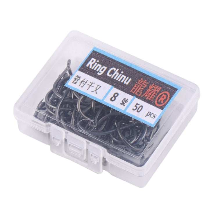 8# 50 PCS (Single Box) Carbon Steel Fish Barbed Hook Fishing Hooks with Hole