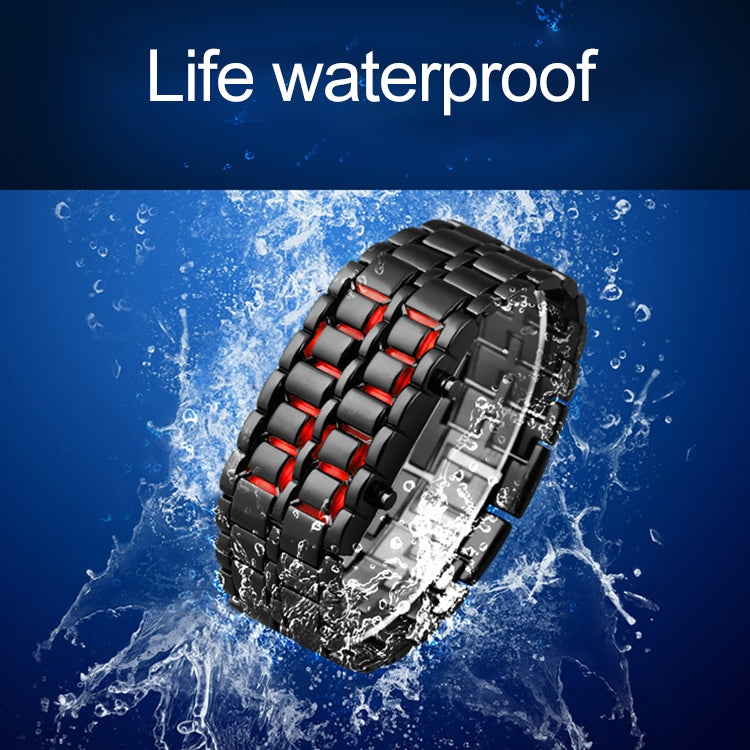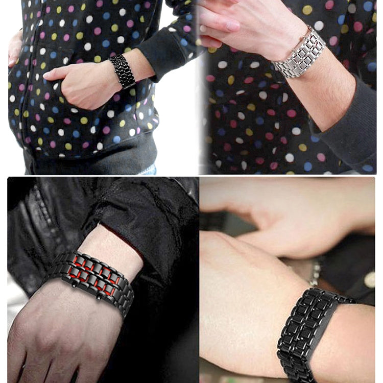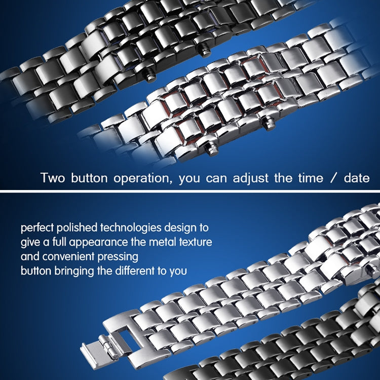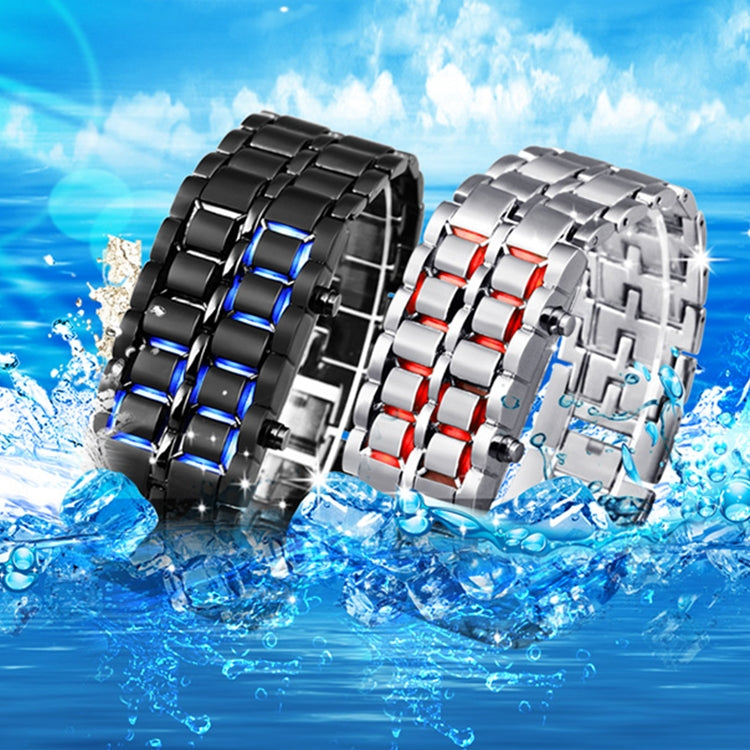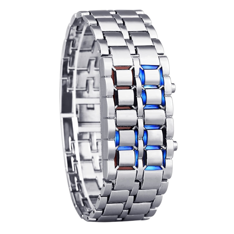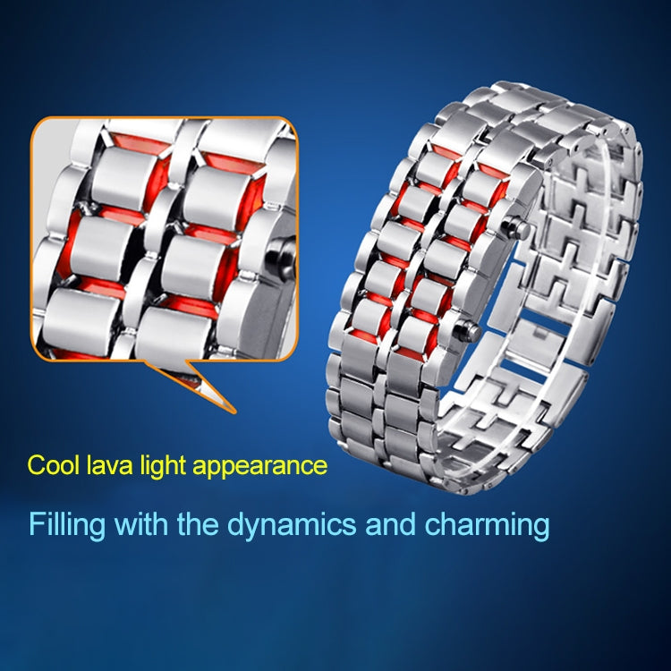 addies MY-0729 LED Digital Display Couple Watch Lava Bracelet Watch for Women(Silver Blue Light)