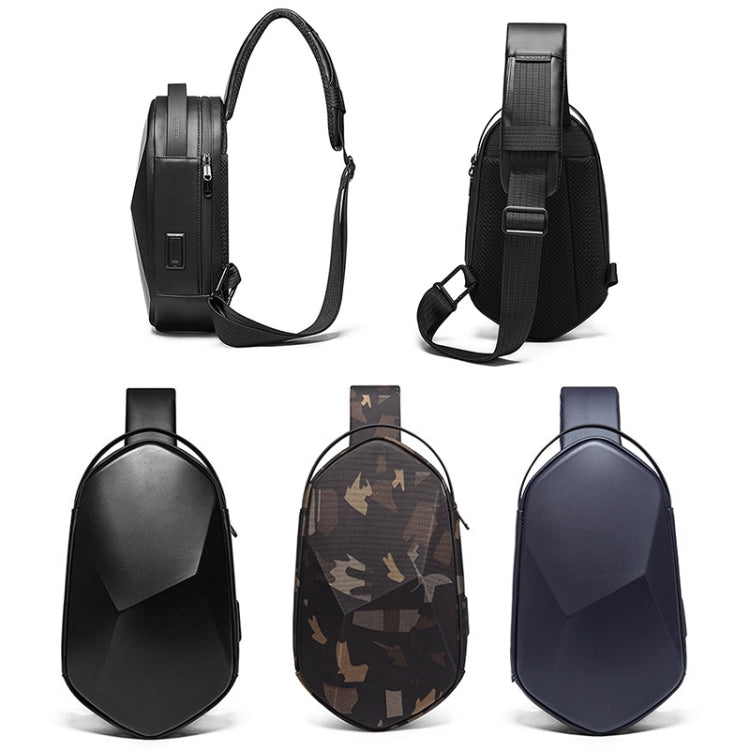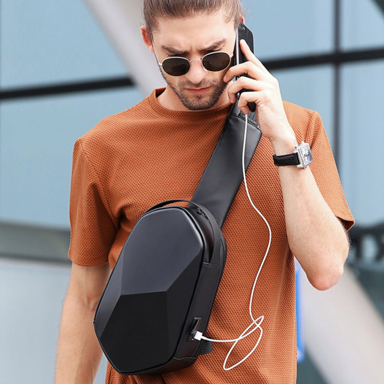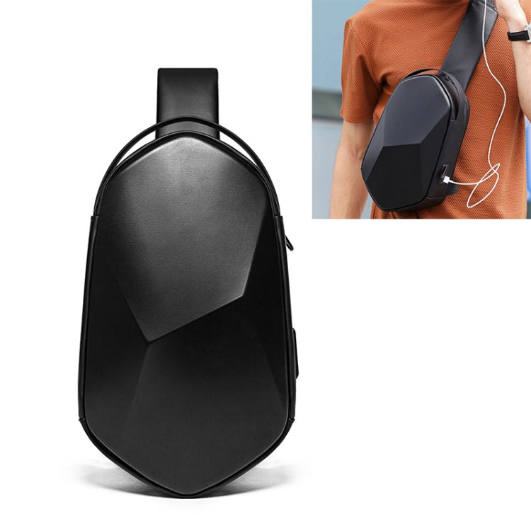 BANGE Chest Bag Men Shoulder Bag Hard Shell Polyhedron Messenger Bag (Black)