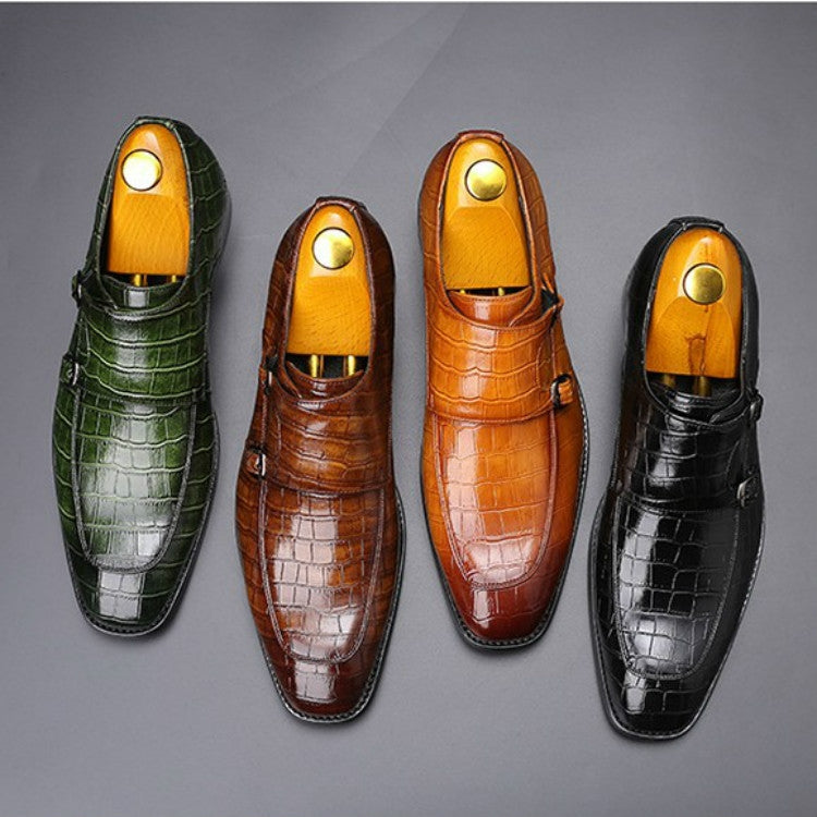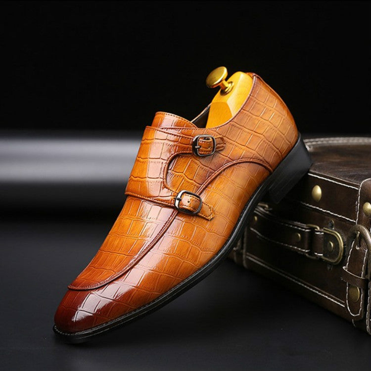 Crocodile Pattern Business Flat Bottom Leather Formal Shoes, Size:43(Yellow)