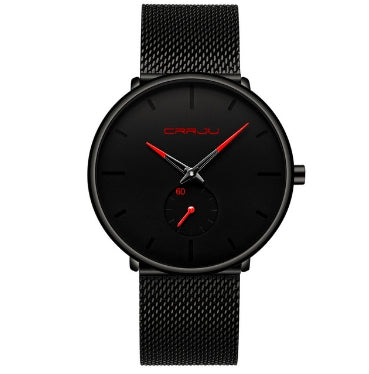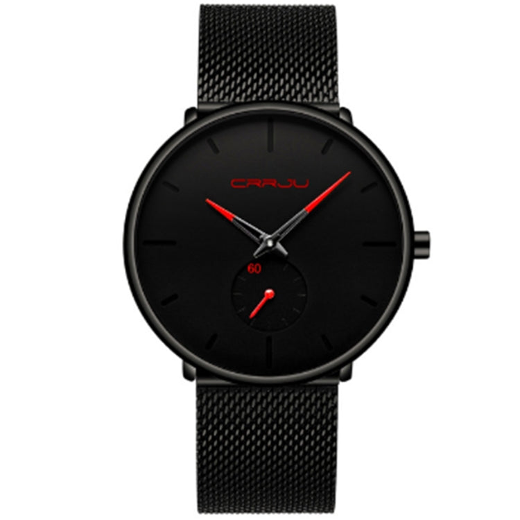 CRRJU 2150 Waterproof Round Dial Small Seconds Alloy Mesh Belt Quartz Watch for Men(Red Pointer)