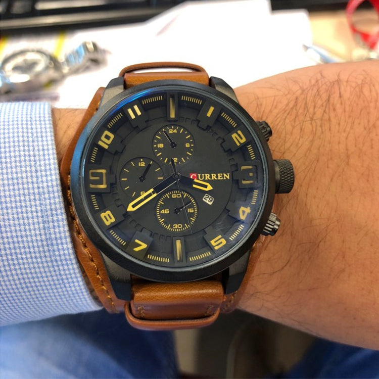 Curren M8225 Army Military Leather Band Men Quartz Watch(Black White)