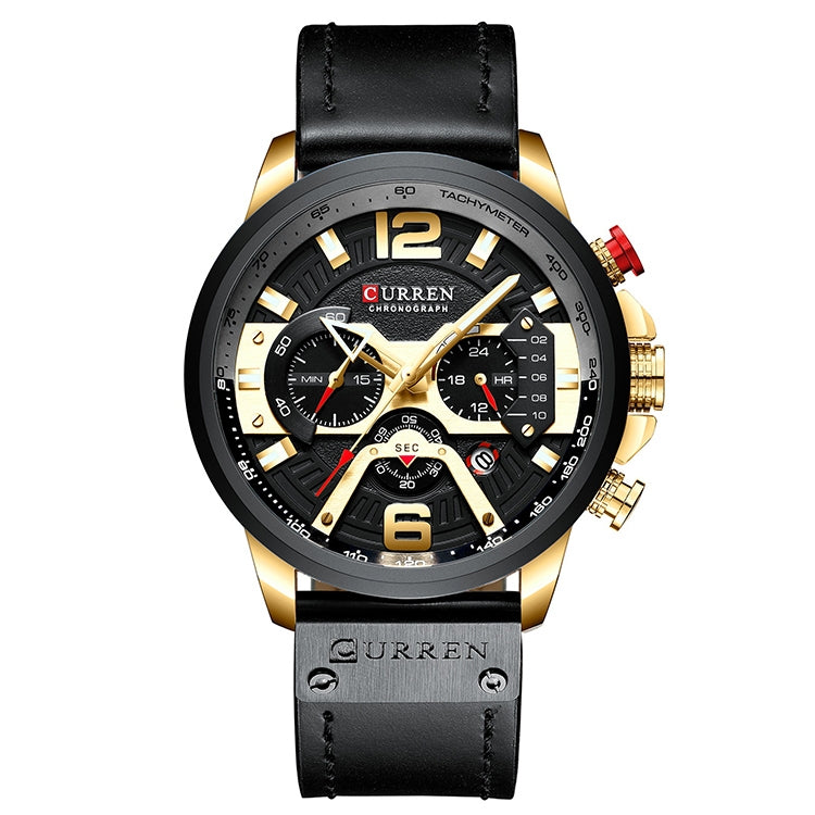 CURREN M8329 Casual Sport Leather Watch for Men(Gold black)