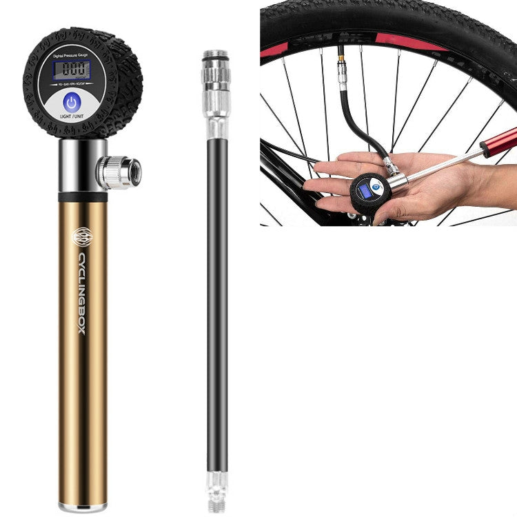 CYCLINGBOX Manual Bicycle Pump Portable LCD Digital Display Tire Pressure Dial Pump(Gold)
