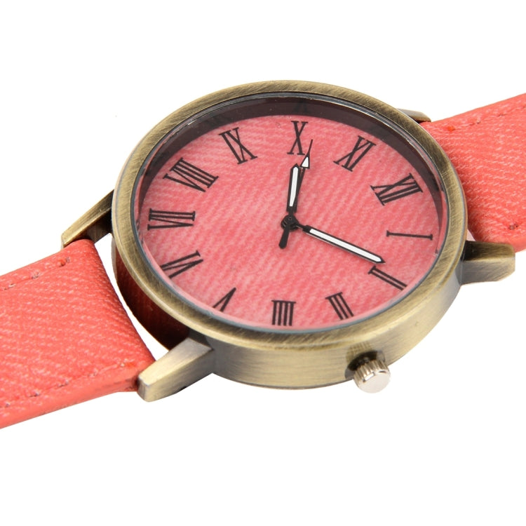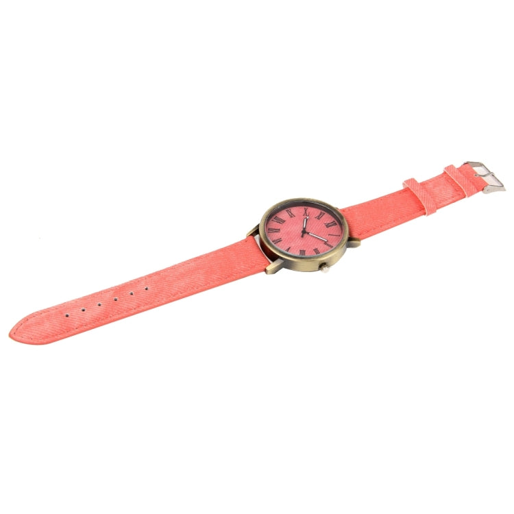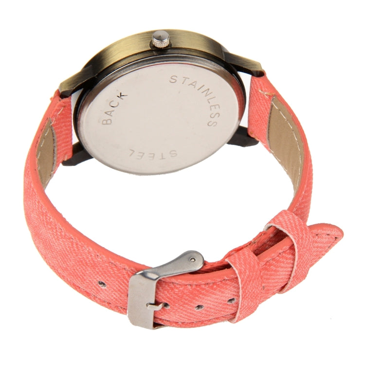 Denim Texture Style Round Dial Retro Digital Display Women & Men Quartz Watch with PU Leather Band(Pink)