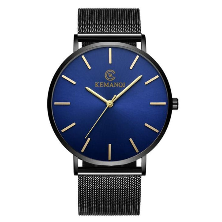 KEMANQI Simple Ultra-thin Waterproof Steel Mesh Belt Quartz Watch for Men(Ultra-thin Mesh belt blue dial)