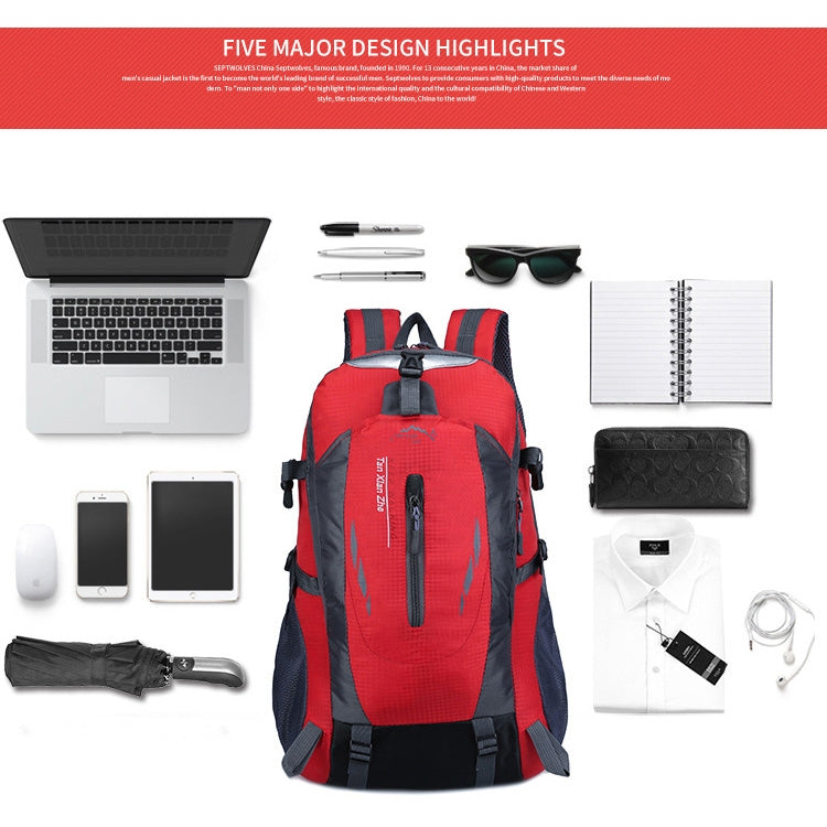 Large-capacity Travel Mountaineering Bag Men and Women Outdoor Sports Leisure Nylon Waterproof Backpack(Red)