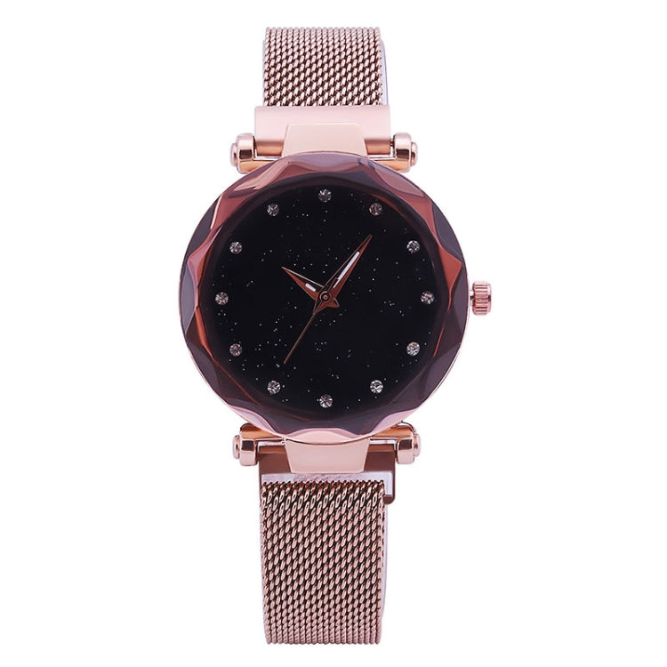 Luxury Mesh Ladies Clock Magnet Buckle Starry Diamond Geometric Quartz Wristwatch Women Watches(Rose gold)