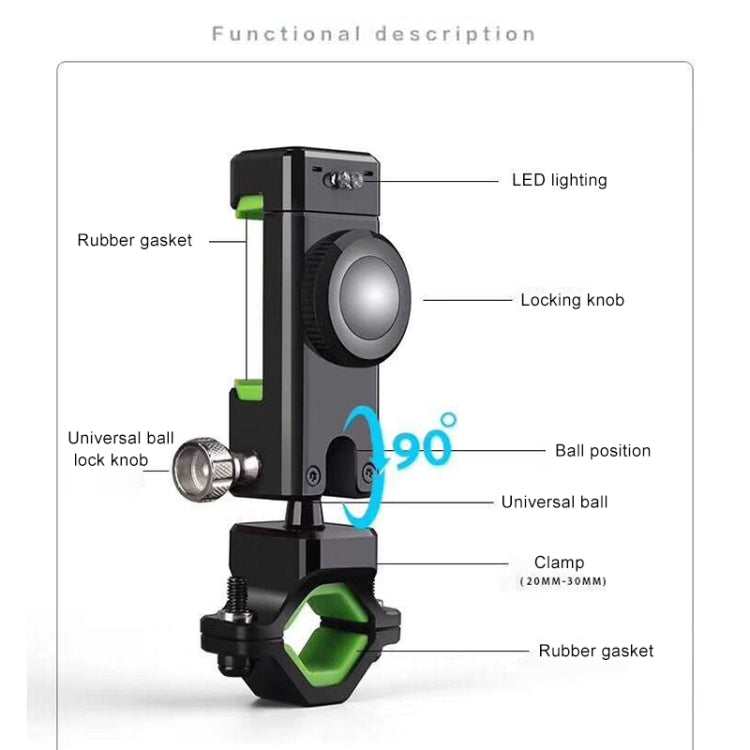 Motorcycle Bike Handlebar Phone Mount Holder Cradle with Compass, LED Light, For iPhone X/8/7/6/6s Plus, Android Samsung Galaxy S6/S7, GPS and other Smartphone