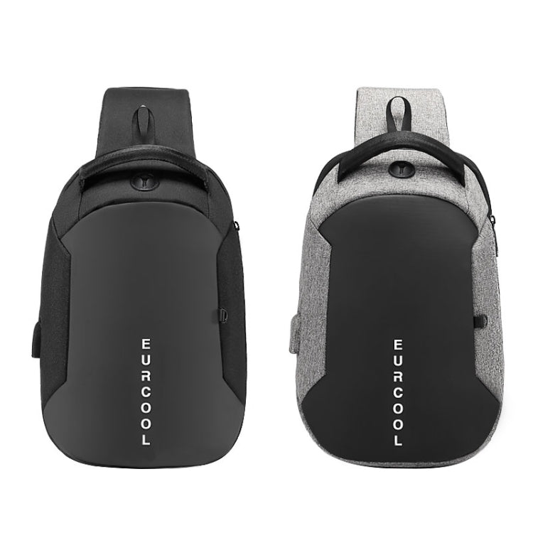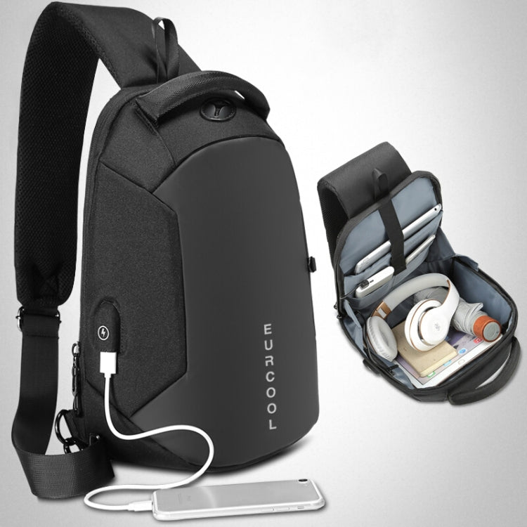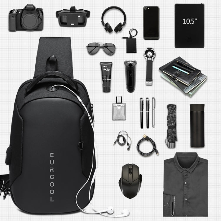 Multi Function Crossbody Bags Men Chest Bag Water Repellent Shoulder Bag with USB Charging Port, Size:L (Black)