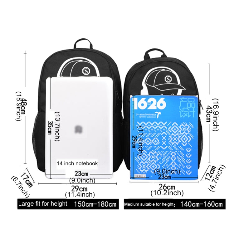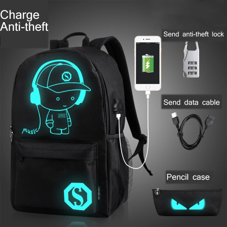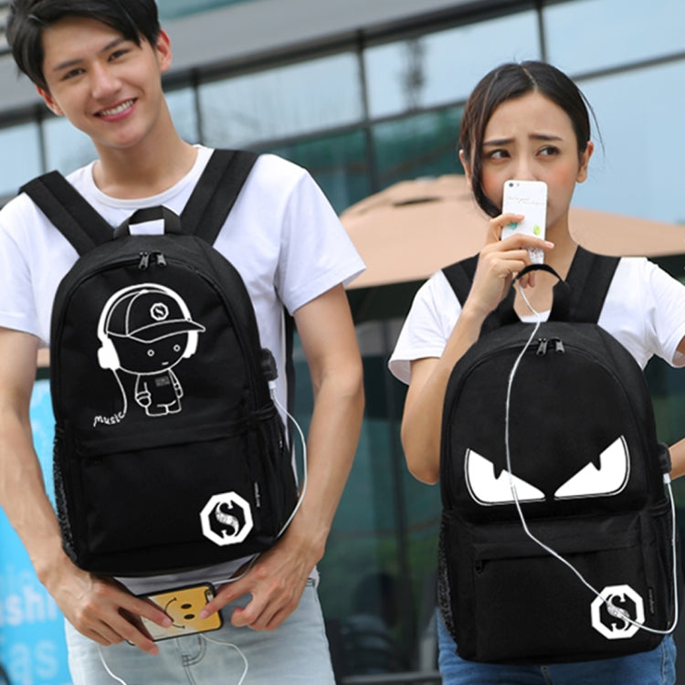 Multi-Function Large Capacity Oxford Cloth Black Music Boy Luminous Backpack Casual Laptop Computer Bag with External USB Charging Interface for Men / Women / Student, L, Size: 48*29*17cm