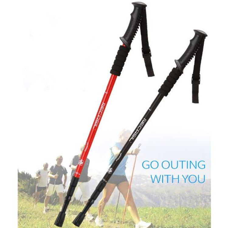 NECASIL Three-section Aluminum Alloy Straight Handle Retractable Trekking Trekking Pole(Black)