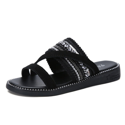 Simple Non-slip Wear-resistant Vintage Woven Outdoor Casual Slippers Sandals for Women (Color:Black Size:35)