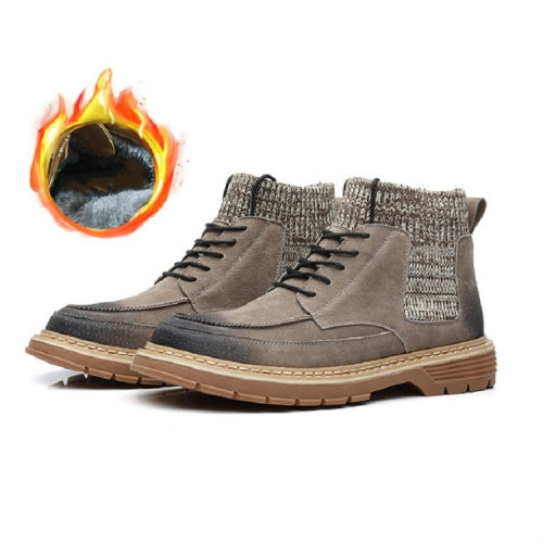Vintage Martin Boots Men High Top Leather Boots, Size:40(Gray Plus Velvet)