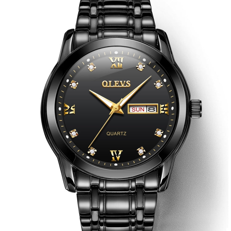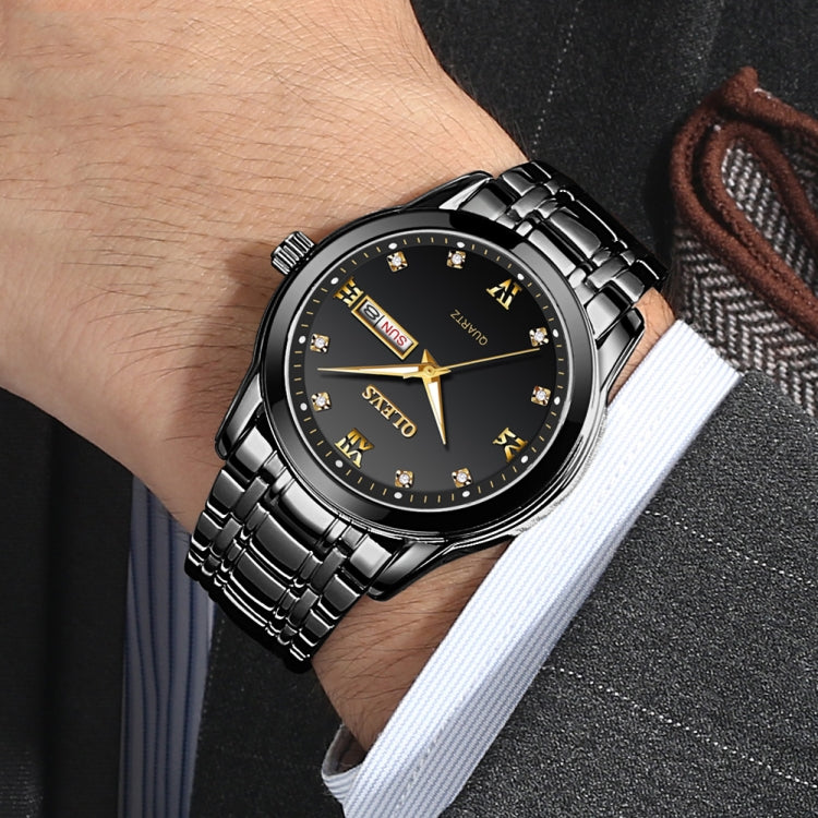 OLEVS 8691 Men Business Luminous Dual Calendar Design Waterproof Quartz Watch(Black)