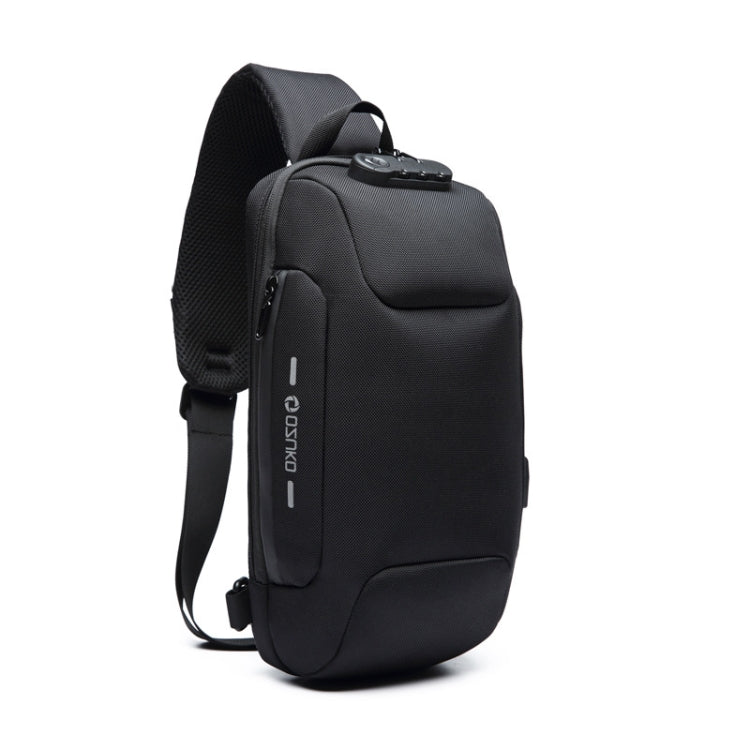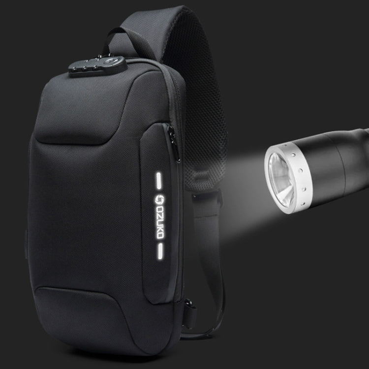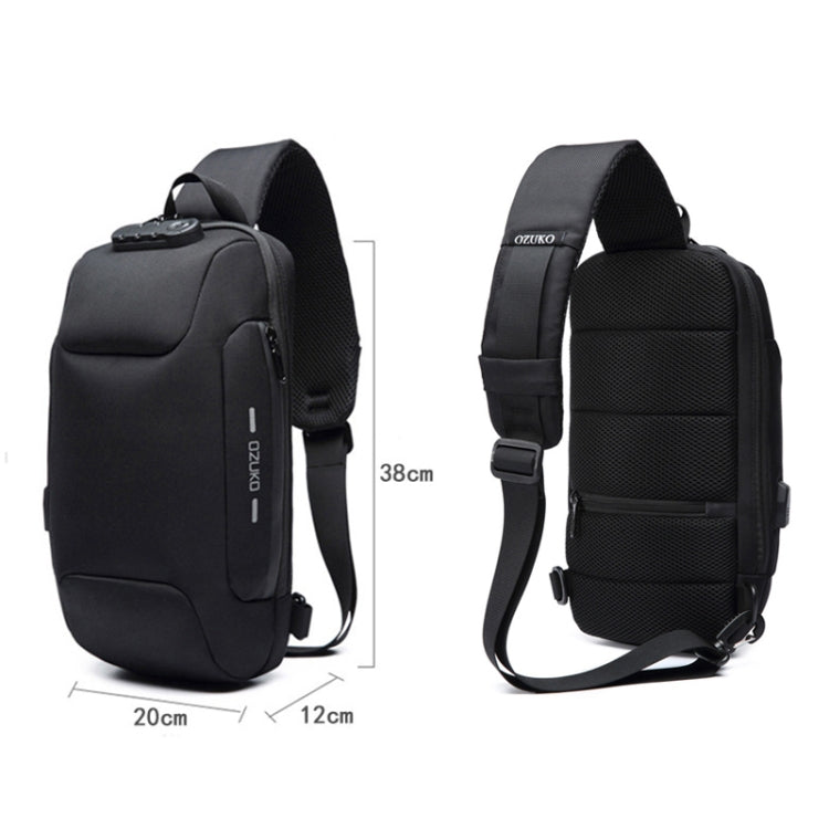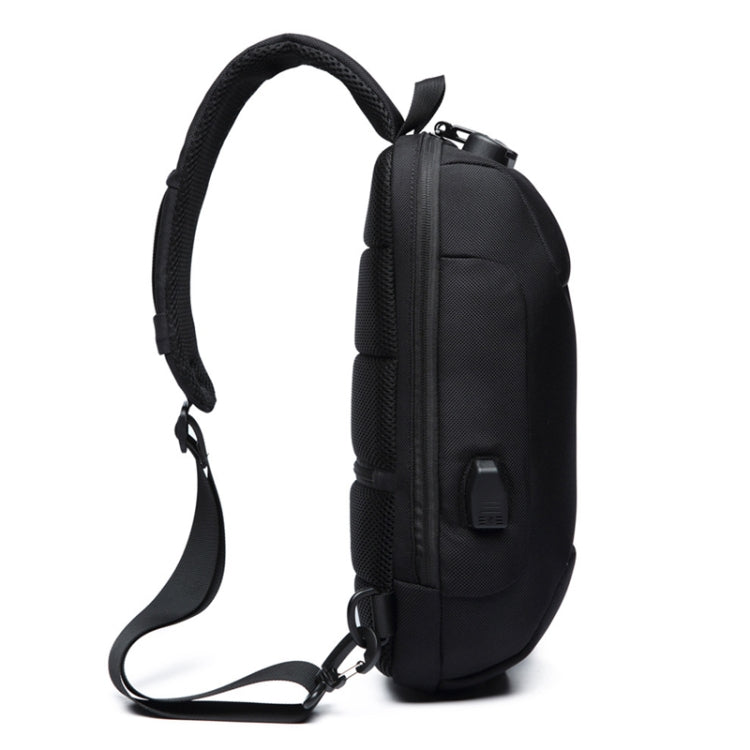 OZUKO 9223 Anti-theft Men Chest Bag Waterproof Crossbody Bag with External USB Charging Port, Style:Large Size(Black)