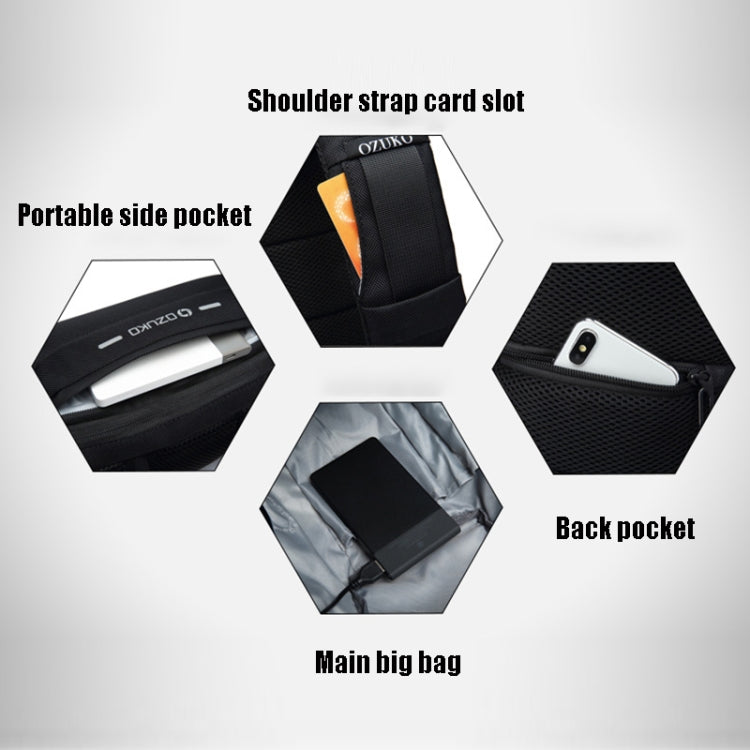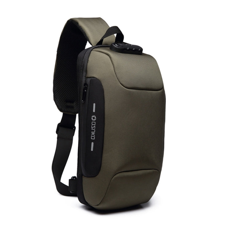 OZUKO 9223 Anti-theft Men Chest Bag Waterproof Crossbody Bag with External USB Charging Port, Style:Standard Size(Army Green)