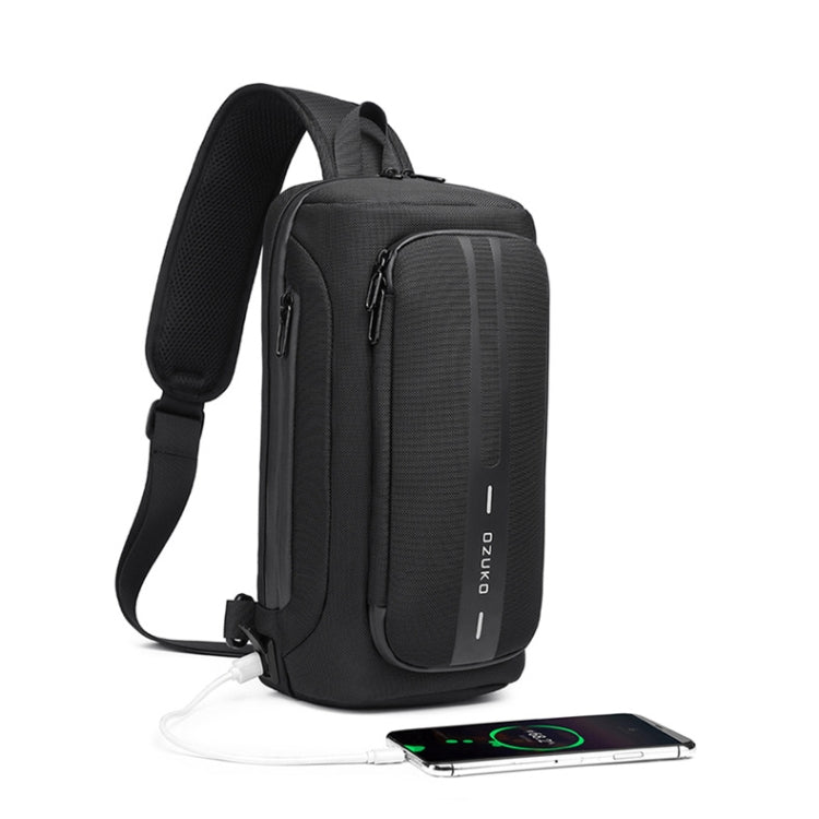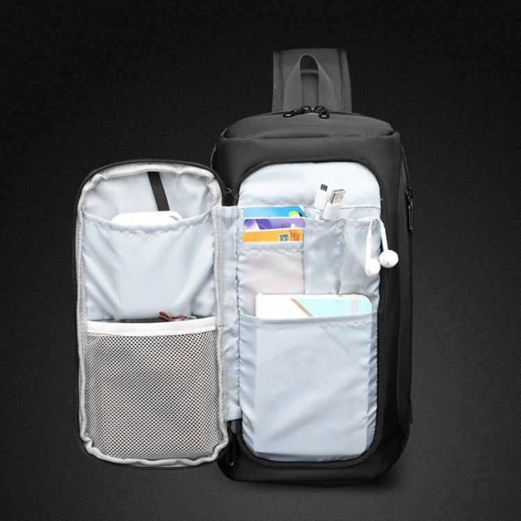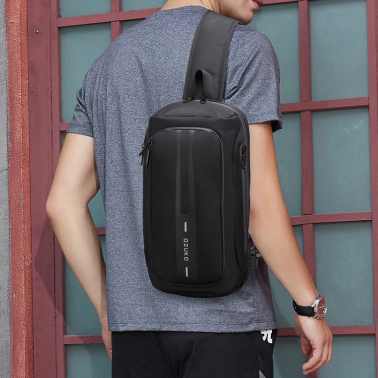 Ozuko 9315 Outdoor Waterproof Men Business Chest Bag Anti-theft Shoulder Messenger Bag with External USB Charging Port(Dark Gray)