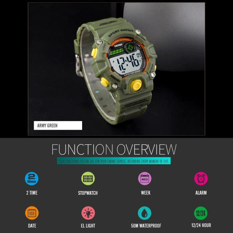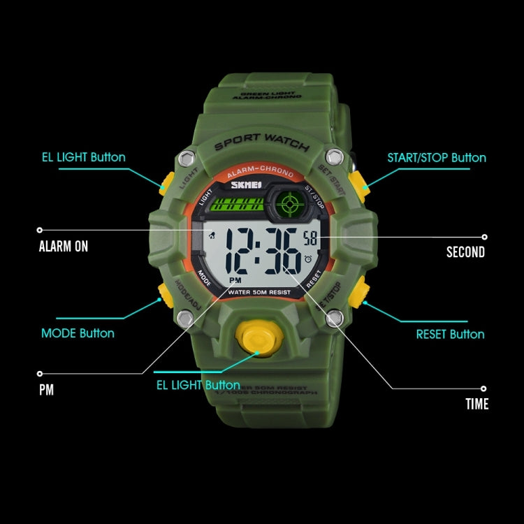 SKMEI 1484 Multifunction Children Digital Watch Outdoor 50m Waterproof Sports Watch(Army Green)