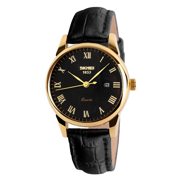 SKMEI 9058 Multifunctional Outdoor Fashion Waterproof Gold Shell Quartz Wrist Watch(Women Style Black Face Black Strap)