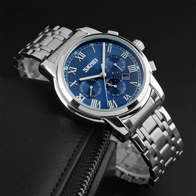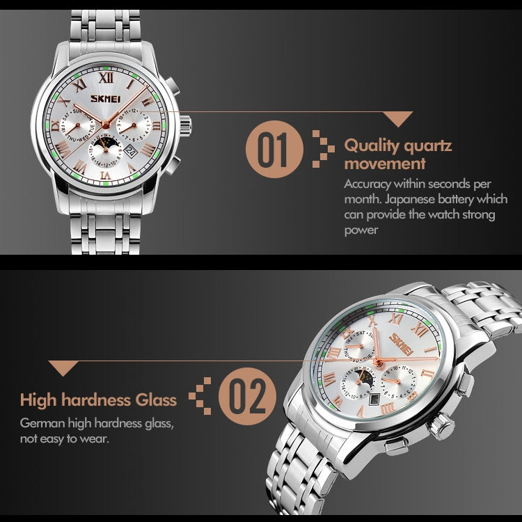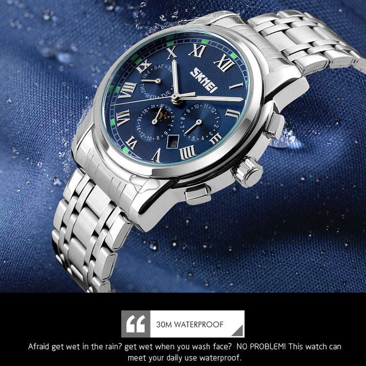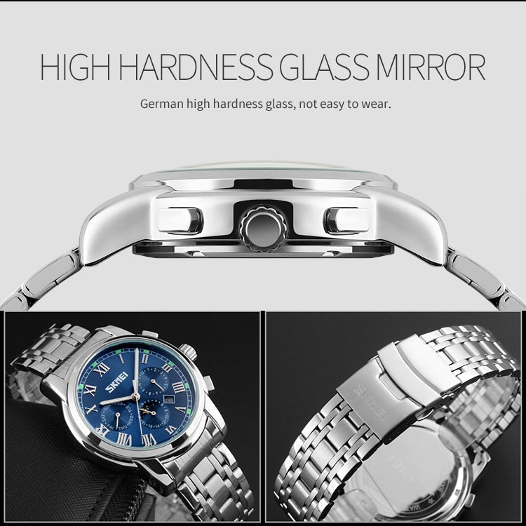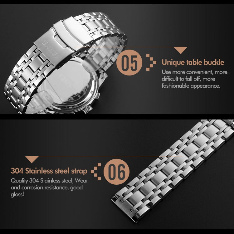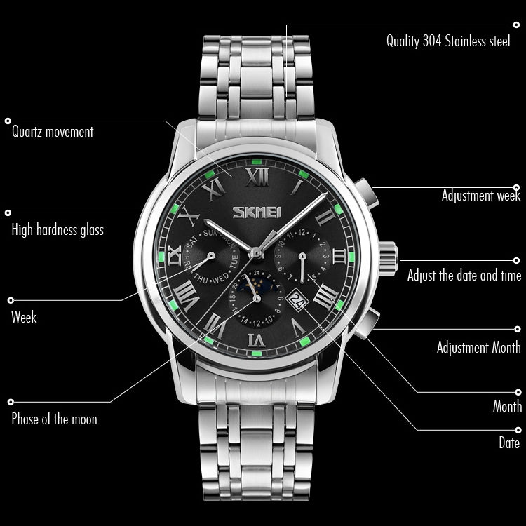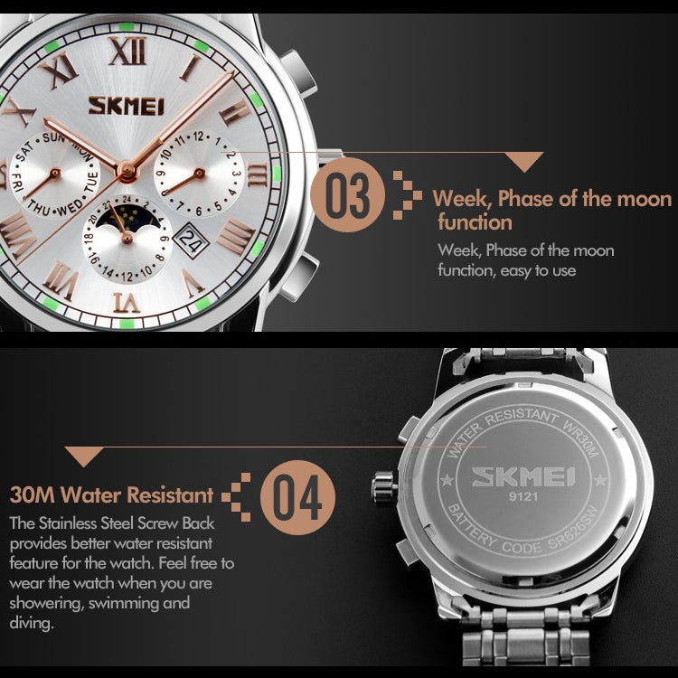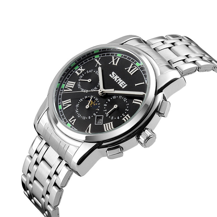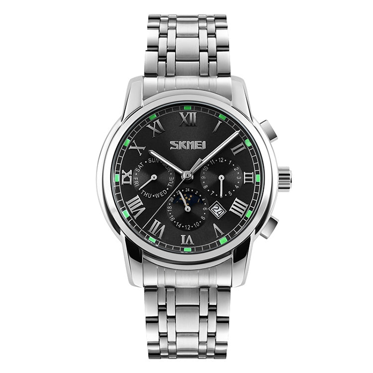 SKMEI 9121 Multifunctional Outdoor Fashion Business Waterproof Steel Strap Quartz Wrist Watch (Black)