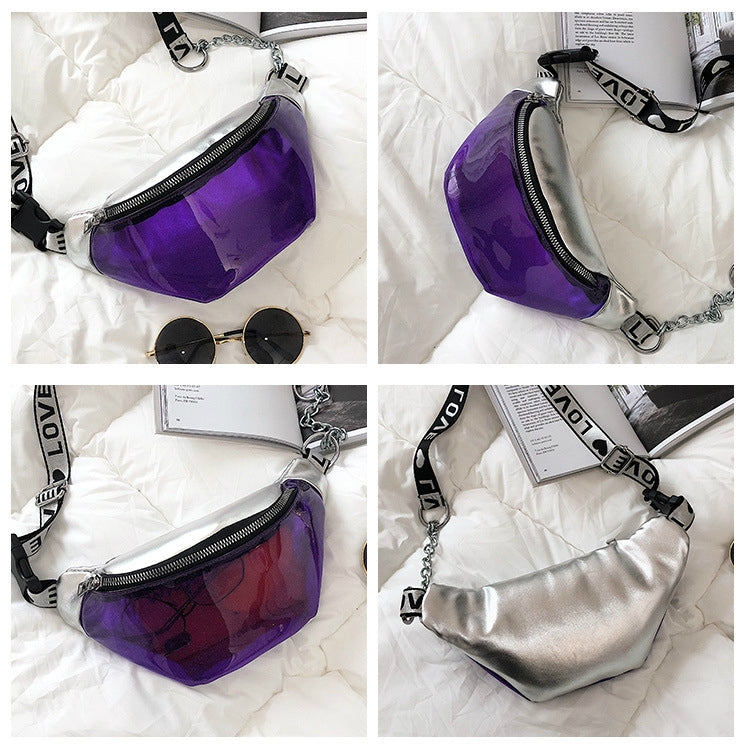 Summer Transparent Fanny Packs Chain Waist Packs Small Belt Bags Female Chest Bag Travel Waist Pack(Clear)
